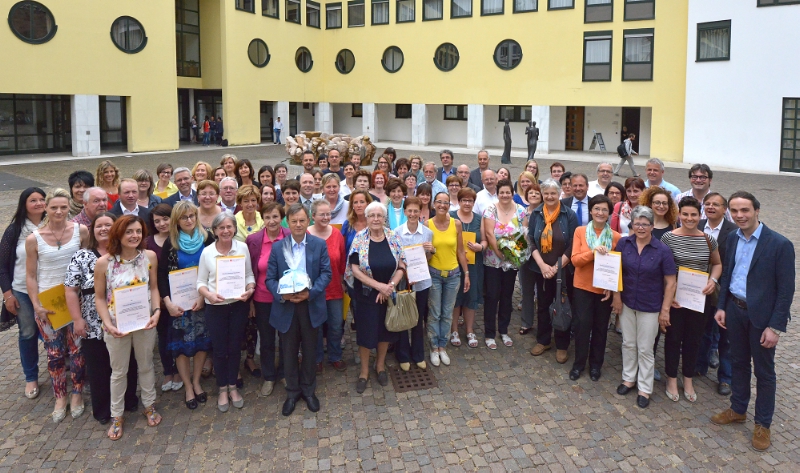 30 Bibliothekarinnen haben in den vergangenen beiden Jahren die Ausbildung zur Leiterin bzw. Mitarbeiterin in ehrenamtlich geführten öffentlichen Bibliotheken absolviert. Im Rahmen der Veranstaltung „Lesen, Hören, Wissen 2014" haben die 30 Bibliotheksleiterinnen - allesamt Frauen - am Donnerstag 22. Mai, aus den Händen von Landesrat Philipp Achammer die Abschlussdiplome erhalten.