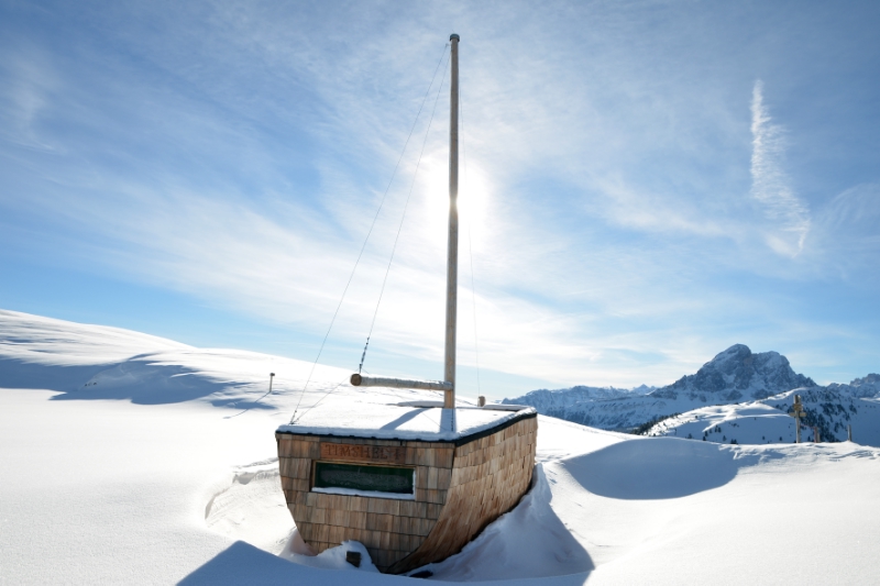 Wer eine Wanderung zu der auf 2.150 Meter Höhe gelegenen Lüsner Alm unternimmt, wird am Glittner See auf ein besonderes Objekt mit dem Namen "TIMSHEL I" stoßen. Es handelt sich dabei um ein Segelboot, das 25 Studenten aus Nord- und Südtirol an der Fakultät für Architektur der Universität Innsbruck entworfen und gebaut haben: sieben Meter lang, zweieinhalb Meter breit und ganz aus Holz.