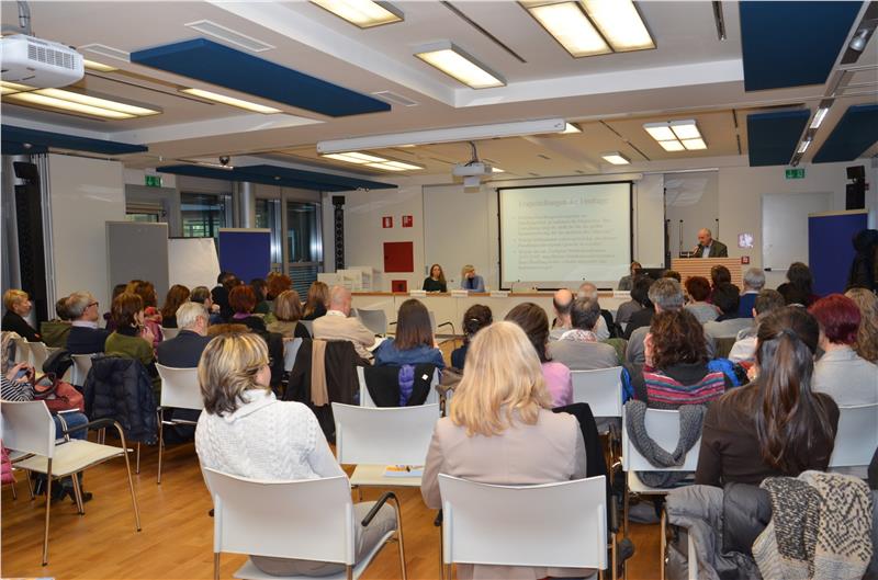 Die Mitglieder der Koordinierungseinheit Peter Santa von der Landesabteilung Gesundheit, Sylvia Rainer von der Landesabteilung Soziales, Bettina Meraner als Vertreterin der öffentlichen Gesundheitsdienste, Peter Koler als Vertreter der privaten Organisationen disktutierten beim Netzwerktreffen gemeinsam mit den Vertretern der Fachdienste die Umfrageergebnisse, die in die Planung und Prioritätenliste der nächsten drei Jahre einfließen sollen. Landesrätin Martha Stocker zeigte sich erfreut über die gute Zusammenarbeit im Bereich der Suchterkrankungen: "Der landesweite Fachplan kann nur effizient umgesetzt werden, wenn alle entsprechenden Einrichtungen in ständigem Dialog zu einander stehen. Deshalb sind Netzwerktreffen dieser Art für das Festlegen von Handlungsschwerpunkten von allergrößter Wichtigkeit."