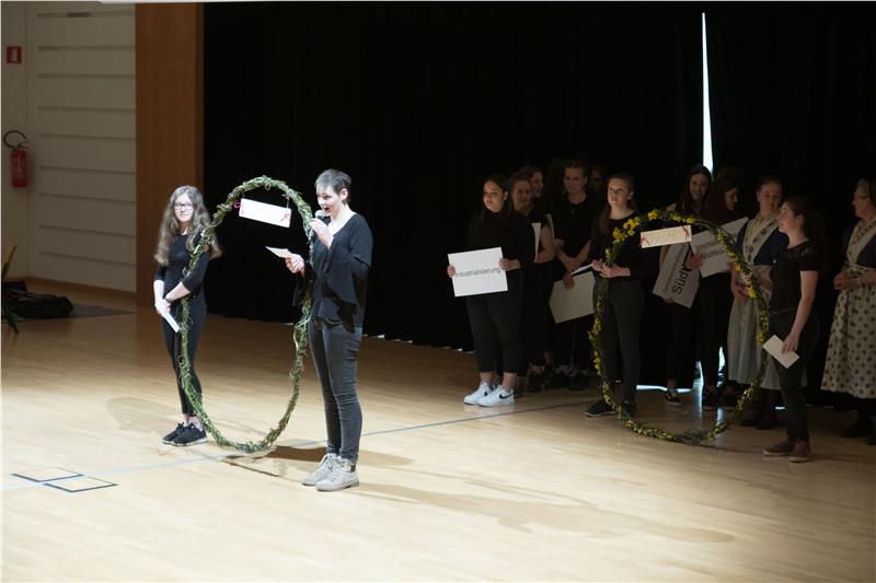 In diesem Jahr wurden sieben Projekte von Südtiroler Schulklassen von einer Jury der Bundeszentrale prämiert, darunter die Arbeiten der Klasse 4B des Kunstgymnasiums Bozens und der 4A der Wirtschaftsfachoberschule Auer zum Thema "Verrohte Sprache". Darin befassten sich die Schülerinnen und Schüler unter anderem mit der Frage, was Sprache bedeute, und stellten unter anderem fest, dass etwas, was man nicht pflege, zwangsläufig verrohen müsse. Die Direktorin der Pädagogischen Abteilung, Gertrud Verdorfer, beantwortete explizit zum Thema Fragen der Schüler und leitete das Thema mit der Überlegung ein: "Sprache ist essenziell für uns Menschen. Sie zeichnet den Menschen aus. Dass wir über Sprachen reden können, unterscheidet uns vor allem von anderen Lebewesen."