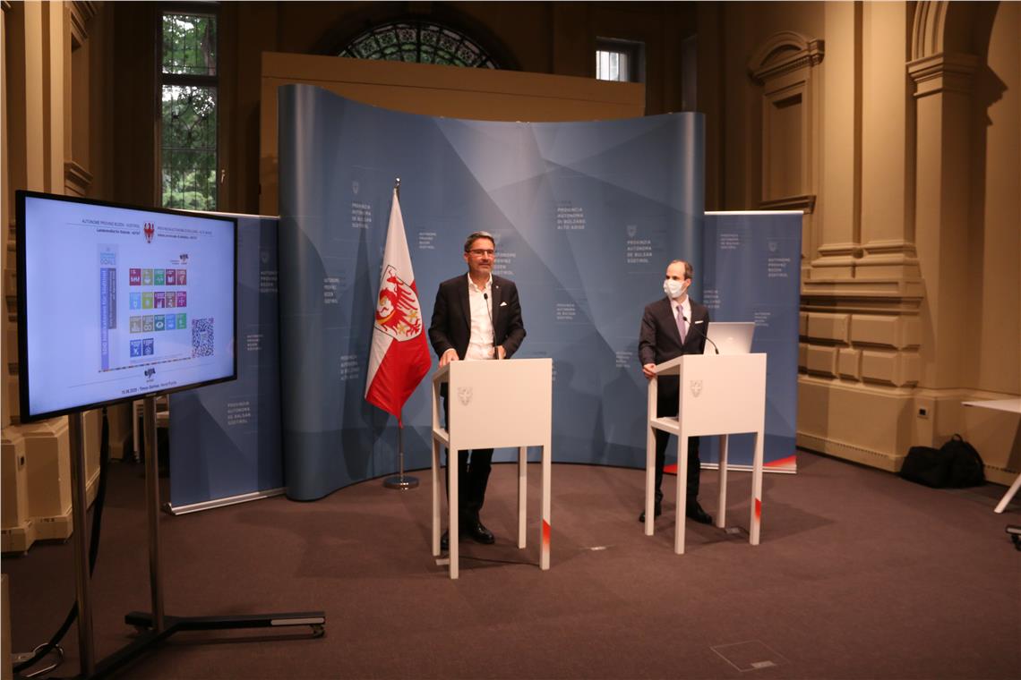 In Sachen Nachhaltigkeit will sich das Land Südtirol selbst auf den Prüfstand stellen. Möglich machen soll dies der sogenannte SDG-Tracker Südtirol, eine Online-Plattform, die Landeshauptmann Arno Kompatscher und der Direktor des Landesinstituts für Statistik (ASTAT) Timon Gärtner heute (15. Juni) in einer Pressekonferenz vorgestellt haben.