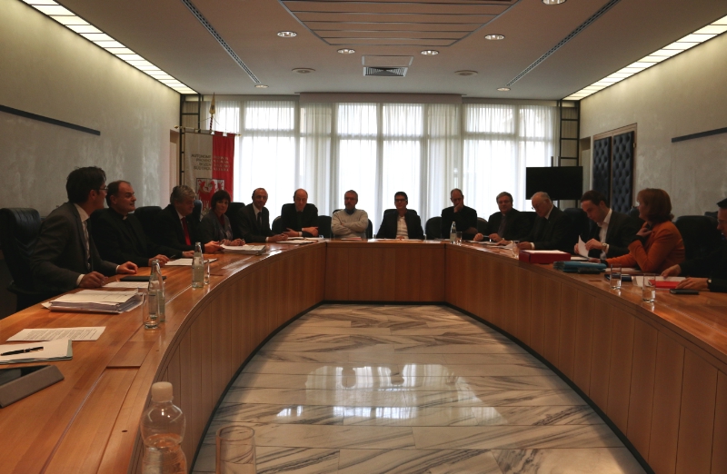 Besondere Gäste konnte die Landesregierung in ihrer heutigen (18. November) Sitzung willkommen heißen: Angeführt von Bischof Ivo Muser war eine Delegation der Diözese zu einem Arbeitstreffen gekommen, in dem es vor allem um die Finanzierung der Privatschulen, die Zusammenarbeit beim Denkmalschutz, eine solidarische Gesellschaft und die Einführung des Josefitags als Feiertag ging.