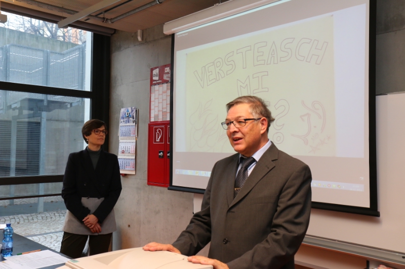 Das Projekt "Deutsch als Zweitsprache für Jugendliche mit Migrationshintergrund (DaZ)" wird begleitet vom Bereich der Deutschen Berufsbildung und dem Bereich Innovation und Beratung. Heute (26. November) wurde es im Beisein von Landesrat Philipp Achammer vorgestellt. "Die Sprache ist tatsächlich der Schlüssel zur Integration, die Kenntnis der Sprache ist die Voraussetzung sich zuhause zu fühlen", erklärte Landesrat Achammer und bedankte sich für das große Engagement der Lehrpersonen und des Direktors der Landesberufsschule für Handwerk und Industrie Josef Andreas Haspinger. Das neue Konzept der Sprachförderung sieht neben der Förderung der standardsprachlichen Kompetenzen einen verstärkten Unterricht in der "Fachsprache Deutsch" in Zusammenarbeit zwischen den Sprachlehrkräften und den Fachlehrpersonen sowie die Förderung von rezeptiven Kenntnissen, d.h. vom Verstehen der gesprochenen Sprache vor.
