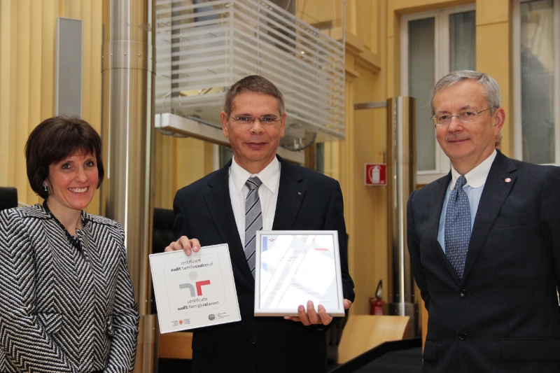 Neun Südtiroler Betrieben ist Familienfreundlichkeit bescheinigt worden. Sie haben in diesem Jahr das Audit "familieundberuf" durchlaufen. Heute (15. 12.) konnten sie im Bozner Palais Widmann aus den Händen von Familienlandesrätin Waltraud Deeg und Handelskammerpräsident Michl Ebner das entsprechende Zertifikat entgegen nehmen. Ihr Audit erneuert bzw. bestätigt haben weitere sechs Betriebe.