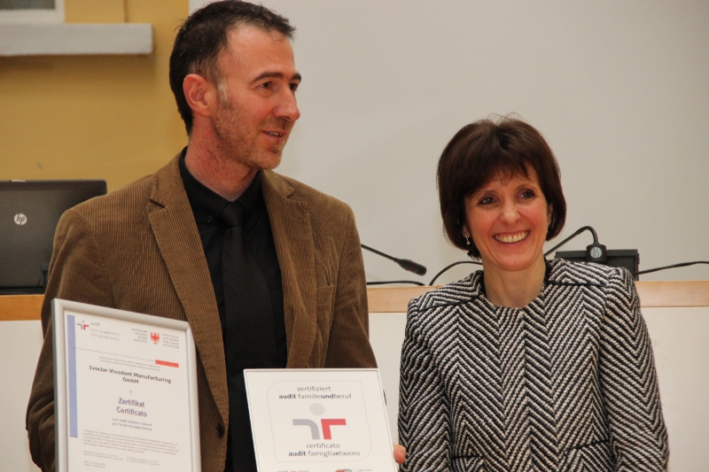 Das Vital Hotel Ortlerspitz in St. Valentin auf der Haide, das Transportunternehmen Lechner Trans des Lechner Dennis aus Laas, der Laaser Lebensmittelherstellter Lechner Herbert, die Spedition Mayr Manuela GmbH aus Taufers im Münstertal, das auf Umweltprojekte spezialisierte Bozner Unternehmen Tecnovia GmbH - Greenlab GmbH, das Dentalunternehmen Ivoclar Vivadent Manufacturing GmbH in Naturns, das im Bereich eCommerce, Internet und Onlinemarketing beheimatete Unternehmen teamblau GmbH, der Bildungsweg Pustertal und die Handelskammer Bozen sind die neun Unternehmen, die sich ab sofort als besonders familienfreundlich wähnen dürfen.