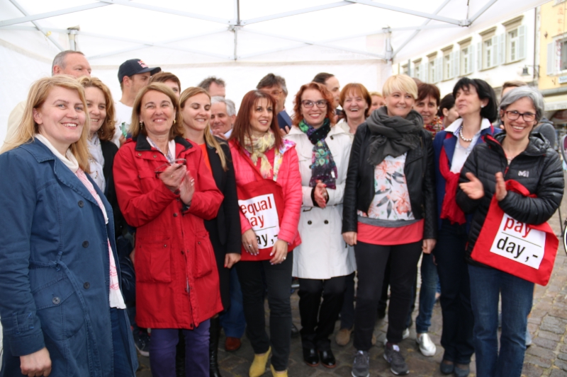 Anlässlich des Equal Pay Day haben heute (17. April) der Landesbeirat für Chancengleichheit, das Frauenbüro und 59 teilnehmende Frauenorganisationen südtirolweit auf den Lohnunterschied zwischen Frauen und Männern von durchschnittlich 17 Prozent sowie auf die ungleiche Verteilung der Hausarbeit aufmerksam gemacht. Am Infostand in Bozen fand dazu erstmals ein Bügelwettbewerb für Männer statt.
