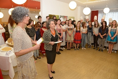Zahlreiche Gäste fanden sich kürzlich im Restaurant der Hotelfachschule der Landesberufsschule Gutenberg in Bozen ein, um die eigens zu diesem Anlass zubereiteten Speisen zu verkosten. Auf dem Bankett fanden sich exotische Vor- und Hauptspeisen wie Mantu und Baklava sowie bekannte Gerichte aus der Südtiroler Küche wie etwa Knödel und Kaiserschmarren. Anschließend gab es auch eine Reihe von ausländischen und einheimischen Nachspeisen. Zwischen den Verkostungen erzählten Lehrpersonen und Schüler lustige Anekdoten über die Entstehung bekannter Gerichte. So sind etwa die Tiroler Knödel bereits auf das 12. Jahrhundert zurückzuführen.