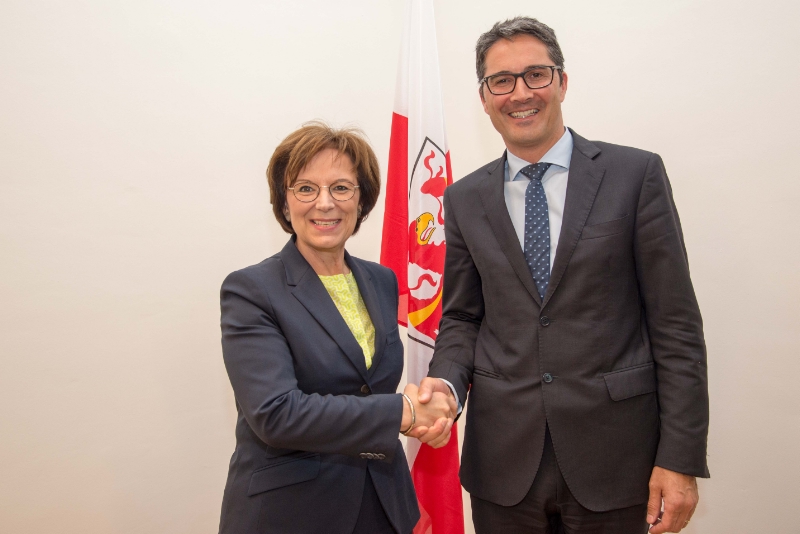 Inklusion und Integrationspolitik, Chancengleichheit und Arbeitsmarkt waren die Themen mehrerer Treffen der bayerischen Staatsministerin für Arbeit und Soziales, Familie und Integration Emilia Müller heute (27. Mai) in Südtirol. Dabei tauschte sich die Staatsministerin unter anderem mit Landeshauptmann Arno Kompatscher, Landesrätin Martha Stocker und Landesrat Philipp Achammer aus.
