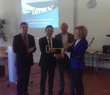„Investitionen in Schulbauten sind sehr wichtig für die Zukunft und die Entwicklung eines Landes, denn neben guter Bildung braucht es geeignete Bildungsbauten, um Jugendliche zu aktiven, selbstbewussten und mehrsprachigen Bürgern zu machen", unterstrich Bautenlandesrat Tommasini bei der symbolischen Schlüsselübergabe an Schuldirektorin Mechthild von Spinn und Abteilungsdirektor Paul Mair. Für optimale Bildung seien aber nicht nur moderne Strukturen von Bedeutung, sondern noch mehr Gewicht liege auf gut ausgebildeten und engagierten Lehrern sowie motivierten Schülern, sagte Tommasini.