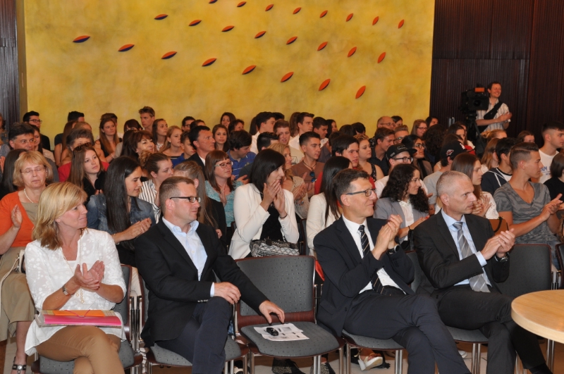 Die Feier zur Verleihung der Zertifikate fand im Saal des Raffeisenverbandes in Bozen statt und unterstrich dadurch nicht zuletzt die Zusammenarbeit zwischen Schule und Arbeitswelt, die wesentlich bei diesem Projekt ist. "Die Übungsfirmen sind ein wichtiges Element der Südtiroler Schulwelt. Damit dieses Lernen auf hohem Niveau funktioniert, braucht es den Einsatz vieler kompetenter Lehrpersonen und Schulführungskräfte", so Schulamtsleiter Peter Höllrigl in seiner Eröffnungsrede.