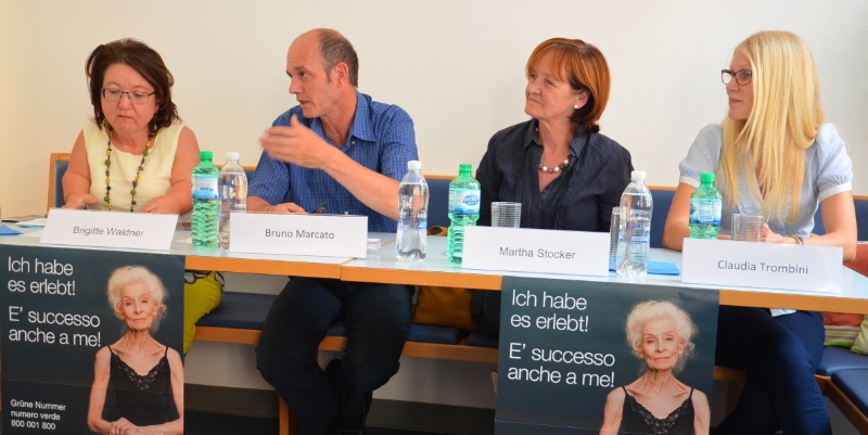 Der Direktor des Betriebes für Sozialdienste Bozen zog Bilanz über die Erfahrungen mit der grünen Nummer "Gewalt im Alter", die vom Betrieb im Auftrag des Landes geführt wird. "Unsere Mitarbeiterinnen sind von Montag bis Freitag von 9 bis 12 Uhr sowie am Donnerstagnachmittag von 14 bis 16 Uhr erreichbar. Außerhalb dieser Zeiten ist ein Anrufbeantworter aktiv, ein Rückruf wird garantiert", erklärte Marcato. Neben der Betreuung der grünen Nummer hat der Betrieb für Sozialdienste mit dem Aufbau eines landesweiten Netzwerkes begonnen und Kontakt mit öffentlichen, privaten und ehrenamtlichen Diensten im Bereich der Altenpflege- und betreuung geknüpft. Daneben wurde an einer verstärkten Zusammenarbeit mit den zuständigen Diensten vor Ort gearbeitet. Von Mai 2014 bis Mitte Juni 2015 sind bei der grünen Nummer insgesamt 48 Telefonanrufe von etwa 40 interessierten und betroffenen Menschen eingegangen. Seit kurzem ist neben der grünen Nummer und der Homepage www.gewaltimalter.eu auch die E-Mail-Adresse gewaltimalter@sozialbetrieb.bz.it aktiv. Einen konkreten Einblick in eine Situation, in der Gewalt entstehen kann, konnte die Koordinatorin des telefonischen Dienstes Claudia Trombini geben. "Wir wurden hauptsächlich aufgrund von Fällen psychischer Gewalt kontaktiert", berichtete Trombini.