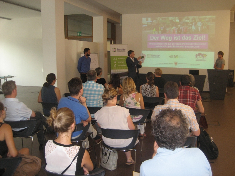 Andreas Pichler, Geschäftsführer vom Ökoinstitut Südtirol/Alto Adige stellte den interessierten Gemeindevertretern das heurige Thema „Der Weg ist das Ziel" vor. Der grenzüberschreitende Wettbewerb „Blühende Straßen" in Zusammenarbeit mit dem Klimabündnis Tirol wurde von Karin Canini von der Landesmobilitätsagentur präsentiert. Bei dieser Aktion soll Straßenraum als Lebensraum umgestaltet werden, wobei der Kreativität keine Grenzen gesetzt sind.
