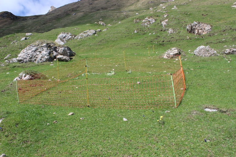Auch das Elektroband mit einer Höhe von 20 Zentimetern hält die Tiere von Fläche fern. Durch das nahe Anbringen am Boden stellt dieser Zaun auch kein Hindernis für anderes wechselndes Wild wie Reh oder Gams dar. Das Band muss auf der optimalen Höhe von 20 Zentimetern verlaufen, um ein Durchschlüpfen oder Übersteigen zu verhindern. Tiere auf der Flucht oder die Jungtiere haben dieses Hindernis daher in einigen Fällen überwunden. Wenn das Band in zwei Reihen übereinander gespannt wird, sollte dies jedoch die Wirksamkeit der Maßnahme zusehends verstärken, berichtet Amtsdirektor Agreiter. Wie beim Schafsweidezaun ergibt sich auch hier das Problem mit dem wachsenden Gras, das die Funktionsfähigkeit des Zauns einschränkt.