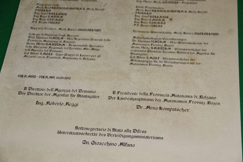 Südtirols Landeshauptmann sprach von einem "weiteren wichtigen Schritt in der Umsetzung der Tauschvereinbarung, die das Land Südtirol 2007 mit dem Verteidigungs- und dem Finanzministerium eingegangen ist". Es sei der Weitsicht des damaligen Verteidigungsministers Arturo Parisi, des ehemaligen Landeshauptmanns Luis Durnwalder und des damaligen Kommandanten der italienischen Gebirgsjäger, Ivan Felice Resce, zu danken, dass diese Vereinbarung als italienweit erste dieser Art zustande gekommen sei. Vom Militär nicht mehr benötigte Flächen würden damit einer neuen Nutzung zugeführt, die Streitkräfte könnten im Gegenzug über funktionelle und moderne Baulichkeiten verfügen. "Der Tausch ist aber nicht nur ein einfacher Tausch", so der Landeshauptmann, "denn durch die Bauarbeiten, die das Land für das Verteidigungsministerium durchführt, erhält die Bauwirtschaft neue Impulse." Der Landeshauptmann gab auch seiner Hoffnung Ausdruck, dass dieser Weg fruchtbringend fortgesetzt werde.