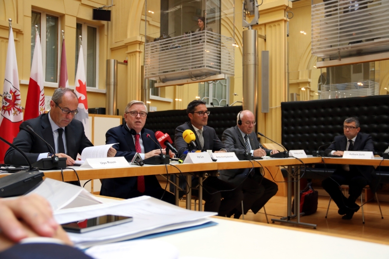Beim heutigen Treffen (16. September) im Palais Widmann konnte Landeshauptmann Arno Kompatscher berichten, dass sämtliche Finanzmittel für den Bau des Hauptstollens bereits vorhanden seien. 30 Prozent der Bauarbeiten am BBT sind bereits vertraglich gebunden, innerhalb eines Jahres sollen insgesamt 90 Prozent der gesamten Arbeiten ausgeschrieben sein. Was die Zulaufstrecken anbelange, gebe es ebenfalls wichtige Fortschritte: "Wir gehen davon aus, dass in den kommenden Wochen der CIPE-Genehmigungsprozess aufgenommen werden kann", erklärte er. "Im Entwurf des Konzessionsvertrags für die Brennerautobahn werden zusätzlich zu den bereits bereitgestellten 550 Millionen Euro weitere 34,34 Millionen Euro jährlich als Querfinanzierung genutzt werden können, also insgesamt für 30 Jahre über eine Milliarde Euro für die Strecke Brenner-Verona", erklärte Kompatscher.