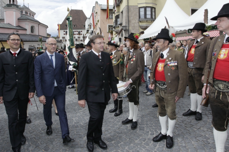 Was zusammengehört, neu verbinden - so definierten heute die Landeshauptleute von Südtirol, Arno Kompatscher, von Tirol, Günther Platter, und des Trentino, Ugo Rossi, beim Euregio-Fest in Hall das Ziel der Europaregion. Das Fest, zu dem 5000 Personen aus den drei Ländern nach Hall gekommen waren, stand unter dem Motto: "Gemeinsam feiern und zusammenwachsen".