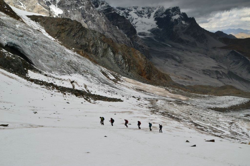 Ziel des Camps ist es, den jungen Leuten Einblick in verschiedene naturwissenschaftliche Disziplinen zu ermöglichen. Sie sollen dabei auch Anregungen für ihren weiteren Berufs- oder Studienweg erhalten. Rund 20 naturbegeisterte Schüler und Schülerinnen aus italienisch- und deutschsprachigen Oberschulen hatten sich zum diesjährigen Glaziologiecamp am Stilfser Joch gemeldet. Am 15. September war es dann so weit: Anstelle von Schulbüchern und Heften starteten die Schülerinnen und Schüler der Oberschul-Abschlussklasse ausgerüstet mit Bergschuhen, Steigeisen und Pickel, denn Lernen in und mit der Natur war angesagt.