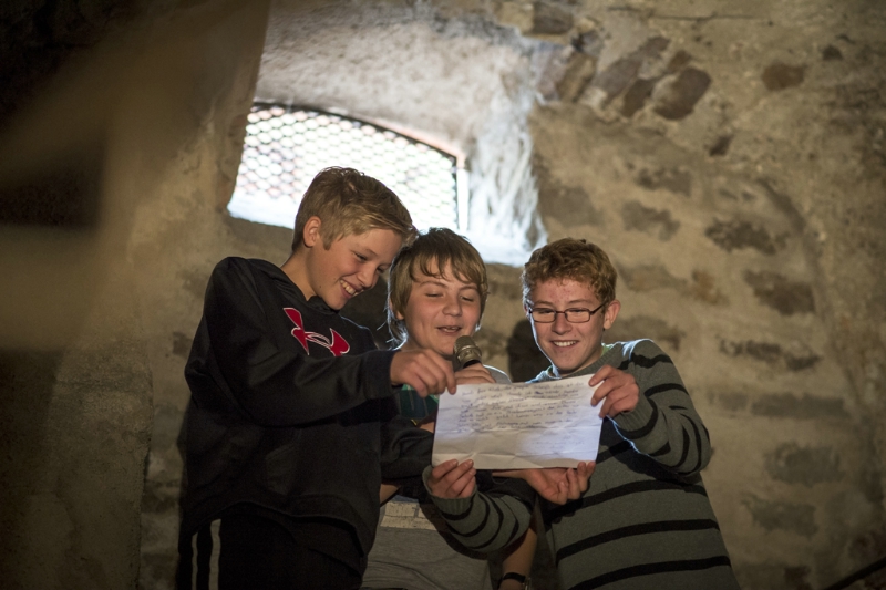 Zuerst besuchten sie das Museum und lernten dort Neues über die Welt des Weinbaus kennen. Dann arbeiteten sie zusammen mit Alissa Thaler, die selbst als junge Slammerin auf vielen Bühnen unterwegs ist, im Weinkeller. Hier begann dann der eigentliche Poetry Slam: Inspiriert von den Ausstellungsgegenständen und von der besonderen Kelleratmosphäre verfassten die Jugendlichen ihre Texte und trugen diese schließlich mit Mikrophon vor den Klassenkameraden vor.