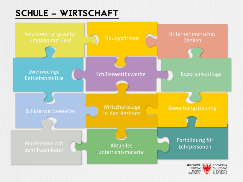 "Dieses Projekt verfolgt das Ziel, den Schülerinnen und Schülern durch den direkten Bezug zur Arbeitswelt einen wichtige Entscheidungshilfe für die Berufsorientierung und die Berufswegeplanung zu geben", sagte Landesrat Achammer. "Auch auf staatlicher Ebene wird dem Zusammenspiel zwischen Schule und Arbeitswelt immer mehr Bedeutung beigemessen. Dieser Weg wird in Südtirol schon seit langem verfolgt. Gelungene Beispiele dafür sind etwa die Übungsfirmen oder Initiativen zur Stärkung des Unternehmergeistes", berichtete der Landesrat. Er hob besonders die Bandbreite der Partner hervor und bedankte sich bei ihnen dafür, dass sie wieder ein interessantes Programm für die Schülerinnen und Schüler zusammengestellt haben. "Mit diesem Projekt wird das praxisorientierte Angebot an den Schulen um einen wichtigen Baustein erweitert", so der Landesrat.