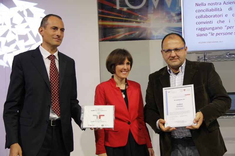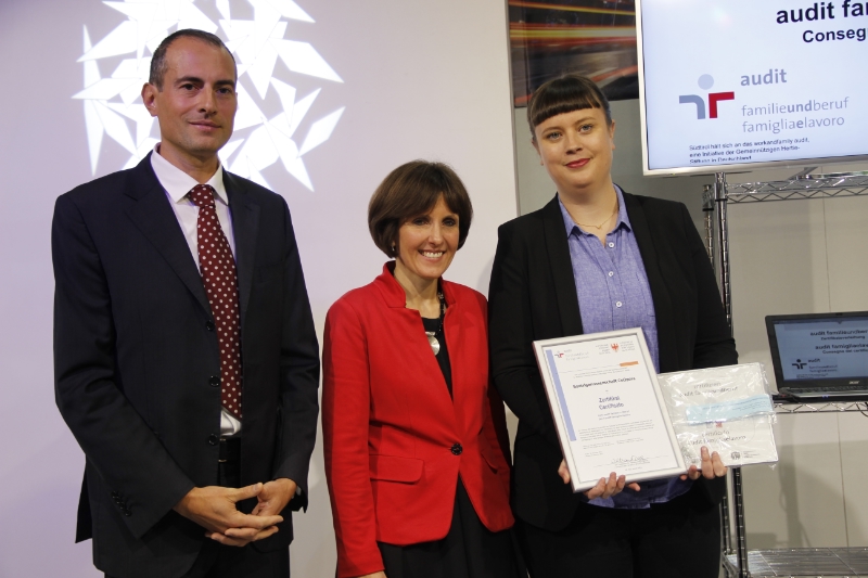 Fünf Südtiroler Unternehmen haben heute (19.11.15) bei der Herbstmesse für ihre familienfreundlichen Arbeitsmodelle das Zertifikat "audit familieundberuf" erhalten. "Ob im Teeverkauf oder im Energiebereich - Lösungen zur besseren Vereinbarkeit von Familie und Beruf sind für Mitarbeiter und Betrieb gleichermaßen gewinnbringend", sagte Familienlandesrätin Deeg bei der Zertifikatsverleihung.