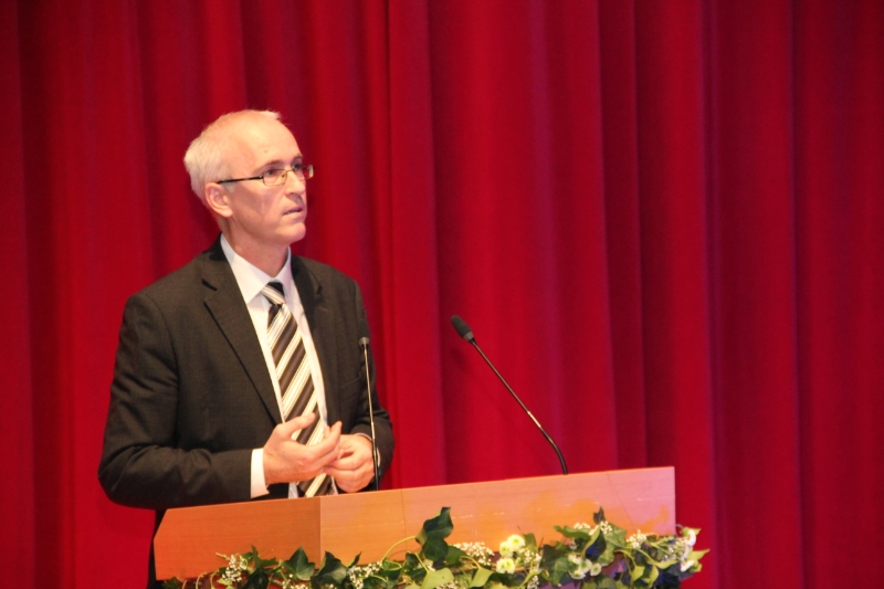 Hartwig Gerstgrasser überbrachte den Anwesenden die Grüße von Landesrat Philipp Achammer, der aufgrund des gleichzeitig laufenden Bildungsdialogs nicht anwesend sein konnte. Er wies darauf hin dass ein beruflicher Abschluss nicht nur Sicherheit, sondern auch das nötige Rüstzeug für die Bewältigung der beruflichen Herausforderung verleiht. "Die Nähe zwischen Schule und Arbeitswelt ist eine Besonderheit der Berufsbildung", betonte Direktor Gerstgrasser und wies auch auf die nunmehr bestehende Möglichkeit hin, die Schule mit der Matura abzuschließen, was eine bedeutende Zusatzqualifikation darstelle.