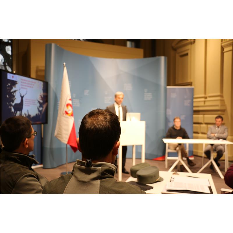 "Unser Auftrag", führte Landesrat Schuler aus, "ist die Erhaltung eines Wildbestandes im Einklang mit den Bedürfnissen der Waldentwicklung und der Land- und Forstwirtschaft". Dabei ist die Jagd der wichtigste Partner, denn nur durch eine geregelte Entnahme kann ein gesundes Gleichgewicht garantiert werden. Um den natürlichen Aufwuchs mit Jungbäumen, also die Verjüngung, zu ermöglichen, ist die Regulierung vor allem des Rotwildes notwendig. Die nun vorliegenden Daten im Vinschgau - innerhalb wie auch außerhalb des Nationalparks - zeigen deutlich, dass die Verbissbelastung durch das Wild für den langfristigen Erhalt der Wälder zu hoch ist.