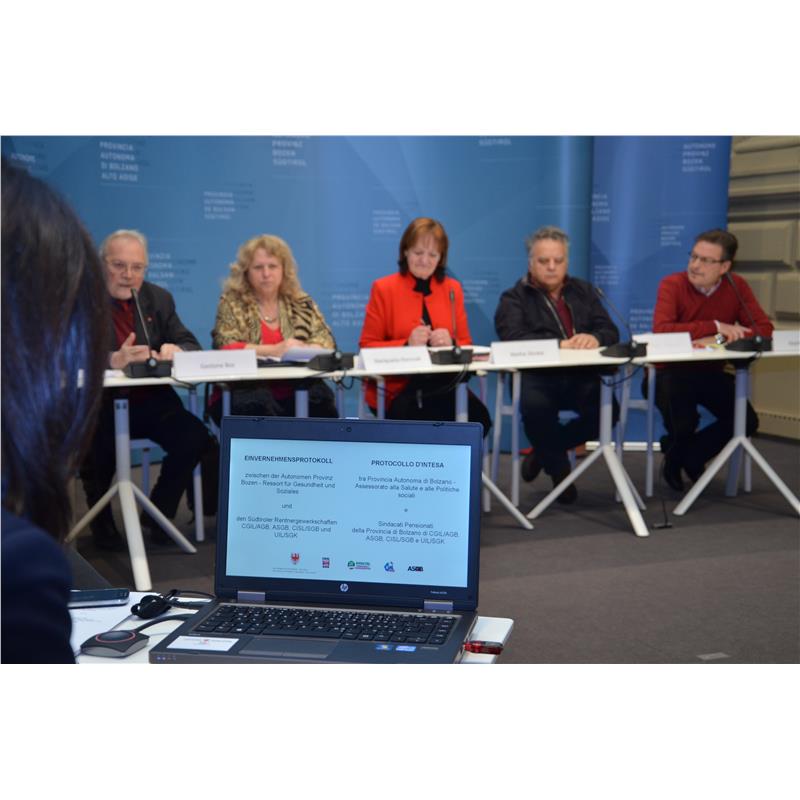 Das heute unterzeichnete Einvernehmensprotokoll stellt die gemeinsame Grundlage der Zusammenarbeit zwischen dem Ressort von Landesrätin Martha Stocker und den Rentnergewerkschaften in den Bereichen Soziales und Gesundheit dar. "Wir haben versucht alle Themenbereiche, die aufgrund der absehbaren demographischen Entwicklung künftig neue Anforderungen an das Gesundheits- und Sozialsystem stellen werden, in das Protokoll aufzunehmen und werden gemeinsam nach Lösungen suchen und entsprechende Verbesserungen anstreben", unterstrich die Landesrätin bei der heutigen Medienkonferenz.