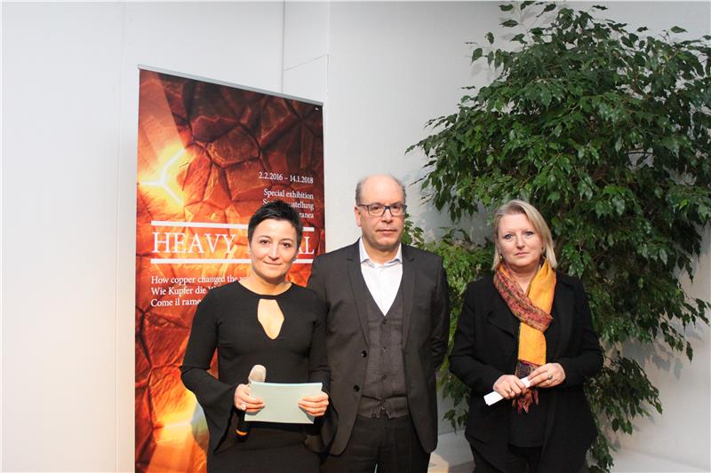 Museumsdirektorin Angelika Fleckinger präsentierte die Inhalte der Ausstellung vom Anfang des Kupfers, über den Ötzi bis hin zum Kupferverbrauch heute und verwies auf die Rahmenveranstaltungen der Sonderschau. Passend musikalisch begeleitet wurde die Ausstellungseröffnung von der Heavy-Metal-Band „Black Star“ aus Trient. Ausstellungskurator Andreas Putzer führte durch die Ausstellung.
