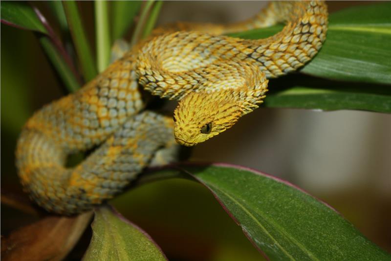 Ein ganz besonderer Gast der Ausstellung ist die giftigste Schlange der Welt und zwar der Taipan: Er lebt in Australien und Neuguinea, kann bis zu dreieinhalb Meter lang werden und frisst Mäuse, Ratten und Vögel. 120 Milligramm seines Giftes können 12.000 Meerschweinchen töten. Gefährlich ist der Biss eines Taipans natürlich auch für den Menschen: Wird jemand von dieser Schlangenart gebissen, überlebt man nur mit einer sofortigen Injektion eines Gegenmittels.