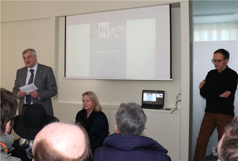 Museen-Landesrat Florian Mussner ist deshalb überzeugt davon, dass es mit dem Aufbewahren der archäologischen Zeugnisse nicht getan sei. „Schutz und Unterschutzstellung ist der erste Schritt, der zweite muss die wissenschaftliche Bearbeitung der archäologischen Zeugnisse sein, und damit die Rückgabe an die Gesellschaft in Form von Information, von Wissen; die Bürger sind interessiert an ihrer eigene Vergangenheit und müssen informiert werden, dazu bedarf es der wissenschaftlichen Bearbeitung und der Vermittlung der Ergebnisse“, betonte Mussner bei der Buchvorstellung