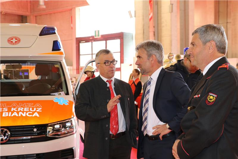 Die Agentur für Bevölkerungsschutz und die Forstabteilung informieren auf der Fachmesse "Civil Protect", die Bevölkerungsschutzlandesrat Schuler heute (26. Februar) Mittag mit dem nationalen Zivilschutz-Chef Fabrizio Curcio eröffnet hat. 120 Aussteller aus elf verschiedenen Ländern geben Einblick in die Tätigkeiten und den Maschinenpark des umfangreichen Bereiches Bevölkerungsschutz.