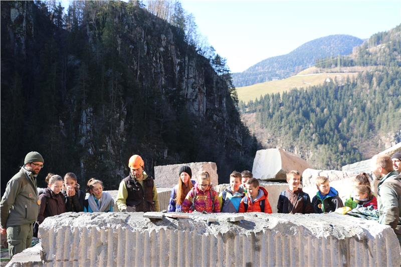In einem Steinbruch der Erdkruste ganz nahe sein, einen uralten Kastanienbaum umarmen, mit allen Sinnen eintauchen in "Mutter Erde": Um das Gleichgewicht in der Natur zu erfassen, haben 16 Schülerinnen und Schüler der Mittelschule Sarnthein mit Förstern einen Projekttag im Freien verbracht.
