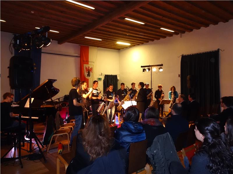 Als nächste Etappe folgte Südtirol. In Sterzing konnten die Jugendlichen gestern Abend im Sterzinger Vigil-Raber-Saal einen Konzertabend mit den dreizehn Musikerinnen und Musiker der Jugend-Bigband Südtirol erleben.