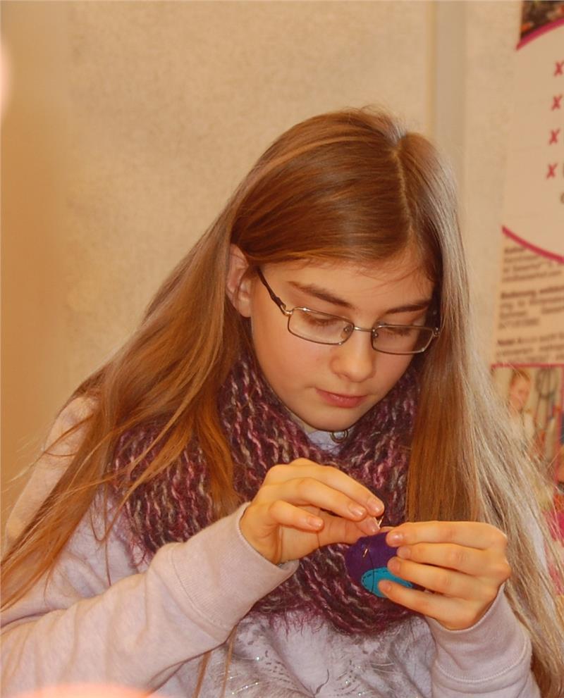 Die besondere Herausforderung im Textilbereich bestand darin, in relativ kurzer Zeit einen Schlüsselanhänger zu nähen. Zum Schluss füllten die Schüler und Schülerinnen ein Quiz aus. Damit nehmen sie an einer Verlosung teil, die Siegerklasse überraschen Frankenberger Schülerinnen der zweiten Klasse mit einer gesunden Jause.