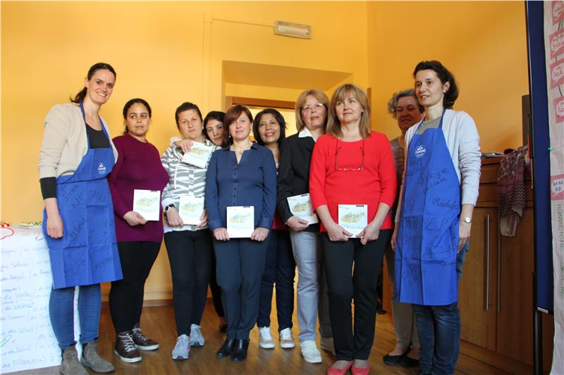 Mit Kochunterricht von Südtiroler Gerichten an der Fachschule für Hauswirtschaft und Ernährung Haslach endete am Freitag, 6. Mai der mehrwöchige Kurs für deutsche Sprache und Alltagskultur für neun ausländische Frauen, die in der Pflege von alten Menschen tätig werden wollen. Zum Abschluss überreichte die Direktorin des Ressorts für Bildung, Kultur und Integration, Vera Nicolussi-Leck, die Teilnahmebestätigungen an die Frauen. Mit einem blauen Schurz und einem Buffett bedankten sich die Teilnehmerinnen bei den Organisatoren des Kurses.