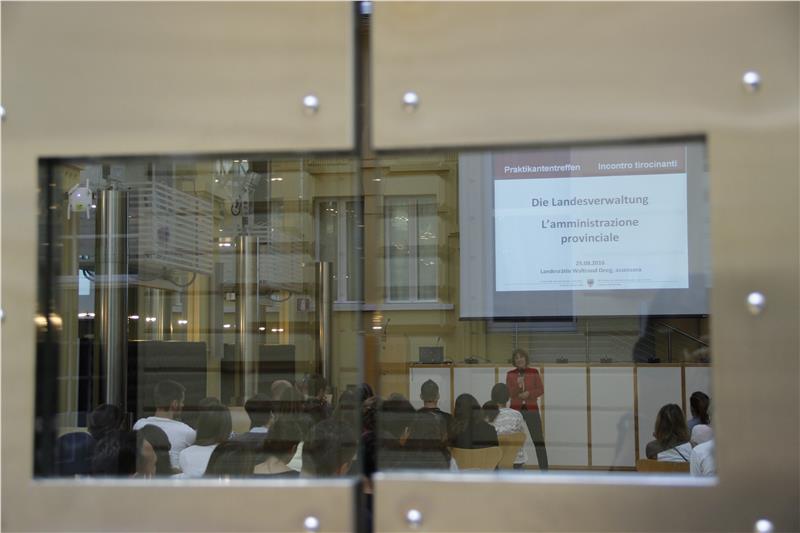 Manuela Pierotti, Direktorin des Landesamtes für Personalentwicklung, gab schließlich einigen Praktikanten die Möglichkeit, selbst über ihre Erfahrungen zu berichten. "Es war für mich sehr interessant, die Verwaltungsabläufe aus der Nähe zu betachten", erzählte Licia Biotti, die im Organisationsamt angestellt war. Gleichzeitig übte sie aber Kritik an der "langsamen Kommunikation" zwischen den Ämtern und Abteilungen. Auch Matthias Cologna, Student an der Wirtschaftsfakultät der Uni Bozen, hat im Organisationsamt gearbeitet und dort nach eigenen Worten "einen großen Spielraum erhalten". Positiv äußerte er sich über das Arbeitsklima und über "die Möglichkeit zu sehen, wie Entscheidungen getroffen werden".