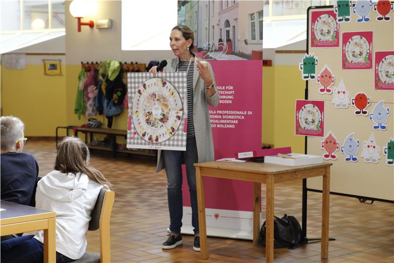 Nahrung ist in aller Munde – aber leider nicht immer die gesündeste. Um auf den Reichtum hinzuweisen, der mit Essen verbunden ist, und für die Wichtigkeit gesunder Ernährung zu sensibilisieren, haben die Lehrerinnen der Fachschule für Hauswirtschaft und Ernährung Haslach ein Gesellschaftsspiel entwickelt, das für Spieler von 9 bis 99 geeignet ist. Schulamtsleiter Peter Höllrigl hat das Spiel heute (30. September) an der Grundschule Rudolf Stolz in Bozen vorgestellt.