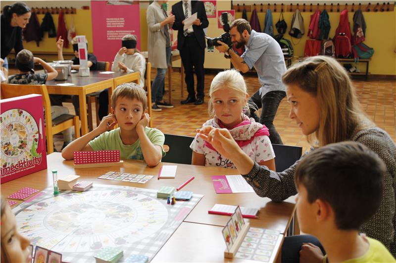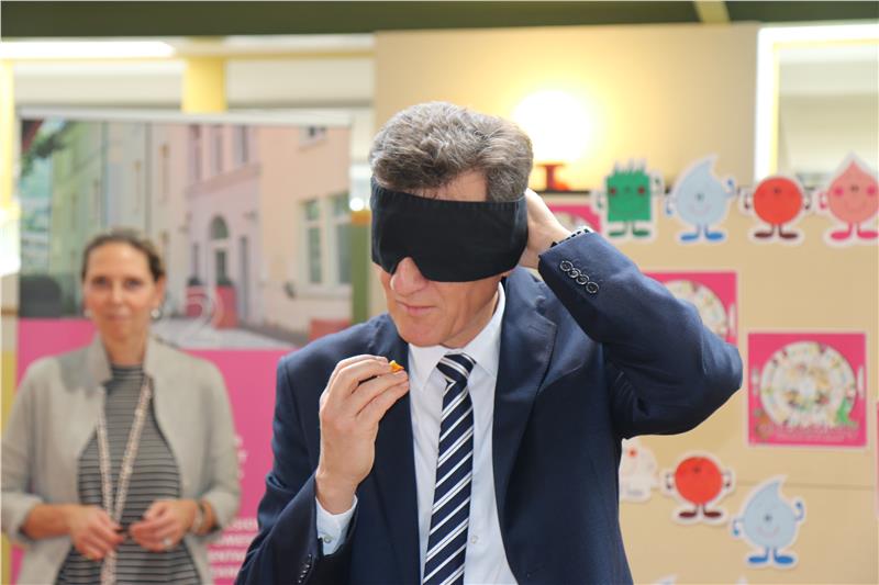 Die Direktorin der Fachschule für Hauswirtschaft und Ernährung Haslach, Gudrun Ladurner, stellte anschließend das Spiel vor, das die Kinder an der Grundschule Rudolf Stolz gleich als erste im Lande ausprobieren konnten. "Das Spiel Schmecktivity ist aus der Bildungsarbeit unserer Lehrerinnen an den Schulen entstanden, die dafür die Idee und die Inhalte entwickelt haben. Es bietet eine Vielzahl unterschiedlicher Spielmöglichkeiten", berichtete Direktorin Ladurner.