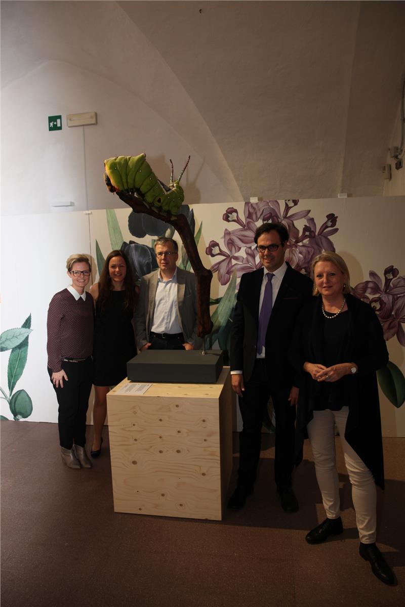 Dalla Torre, der Direktor des Naturmuseums Südtirol Vito Zingerle und die Kuratorinnen der Ausstellung, Monika Lintner und Petra Kranebitter haben die Schmetterlingsausstellung am 26. Oktober im Naturmuseum eröffnet.