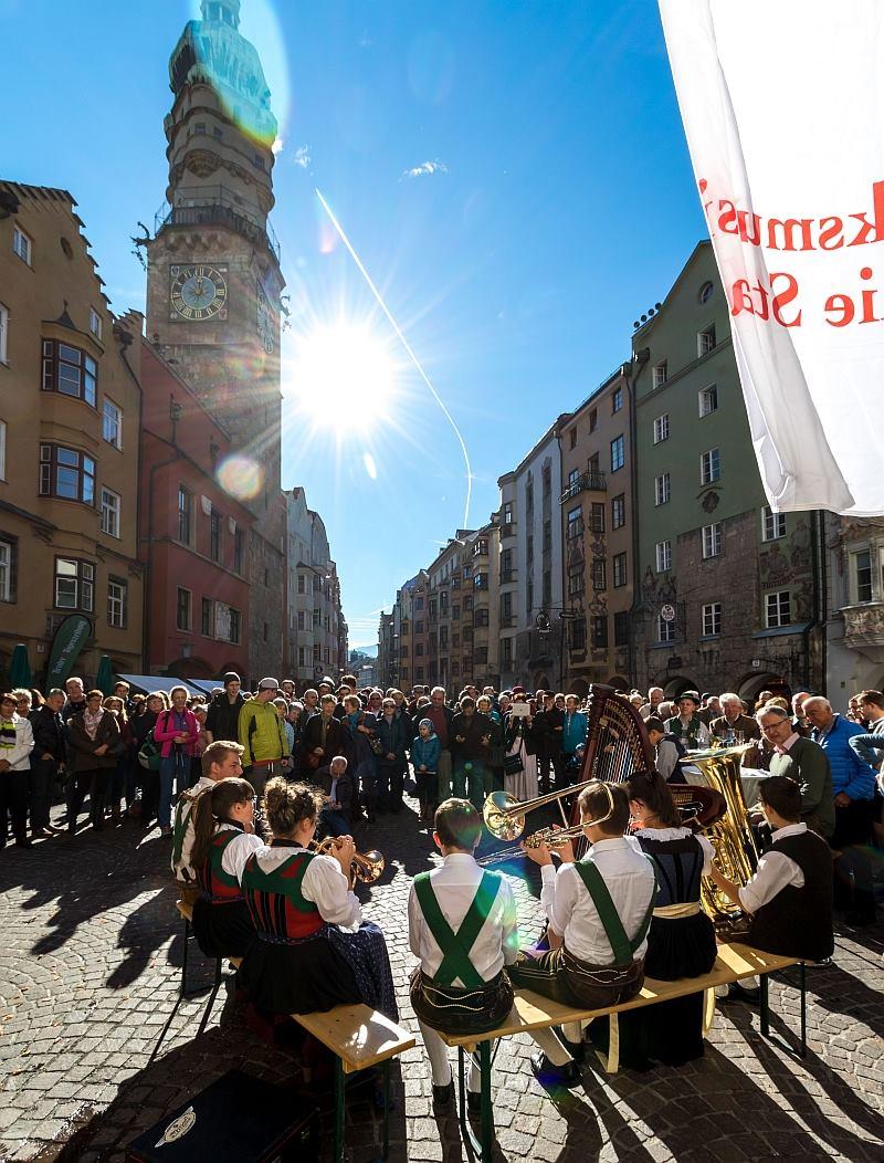 „Aufg’horcht!“ hieß ein weiterer Programmpunkt der Festivals. Auf verschiedenen Plätzen der Innsbrucker Innenstadt wurde aufgespielt und gesungen. Passanten – auch solche, die noch keine Berührungspunkte mit der Volksmusik hatten – blieben stehen und lauschten den alpenländischen Melodien. So gelang es den Organisatoren, Volksmusik, Volksgesang und Volkstanz wieder in das Bewusstsein der Allgemeinheit zu bringen.