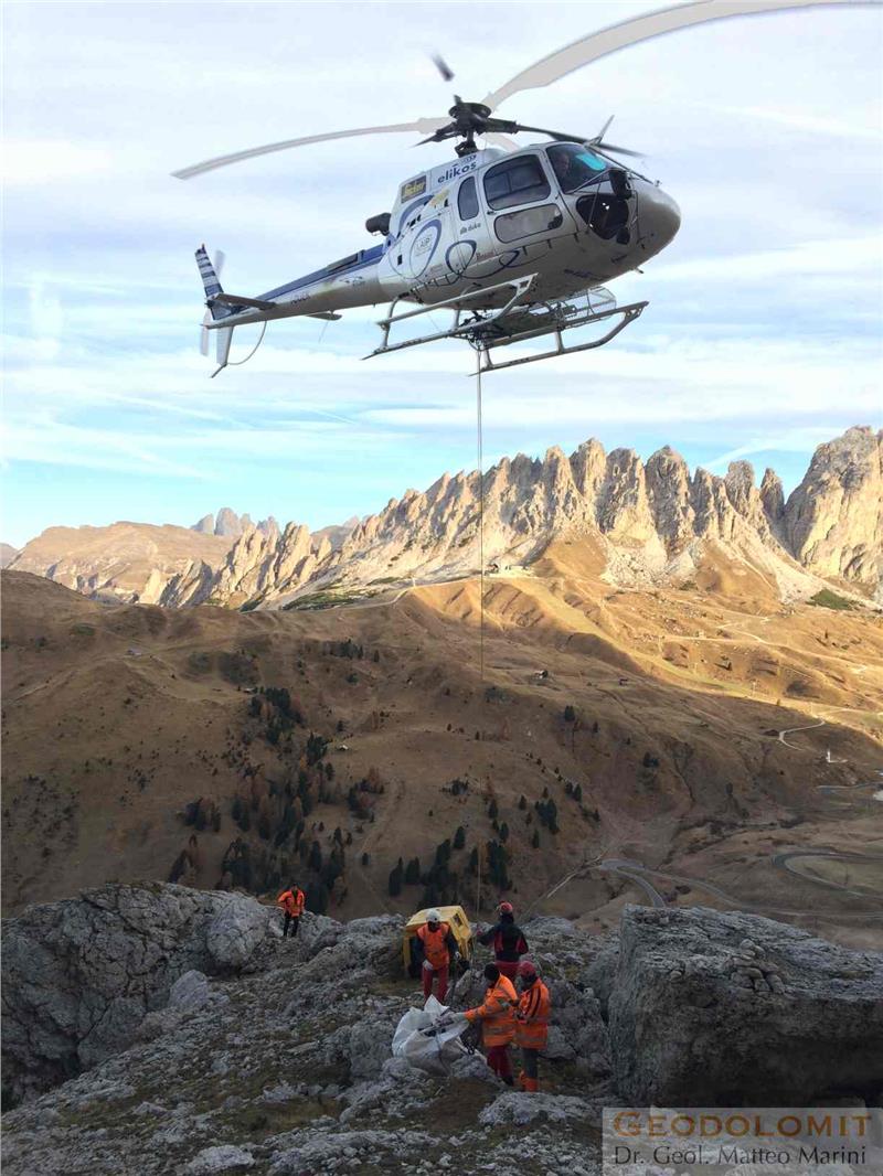 Die Staatsstraße aufs Grödner Joch musste nach ergiebigen Regenfällen im August diesen Jahres bei Murfreit gesperrt werden, da sich eine Menge kleinere Steine längs der Staatsstraße vom Hang gelöst und auf die Straße gestürzt waren. "Wegen der Komplexität des Eingriffs sind die Arbeiten von spezialisierten Felskletterern mit Hilfe von Hubschrauberflügen durchgeführt worden", erklärt Abteilungsdirektor Philipp Sicher. Wegen der günstigen Wetterbedingungen konnte man diesen größeren Felssäuberungseingriff, also die erste Phase der Sicherungsmaßnahmen, bereits am heutigen Freitag, 4. November, beenden und die Straße für den Verkehr wieder freigegeben.