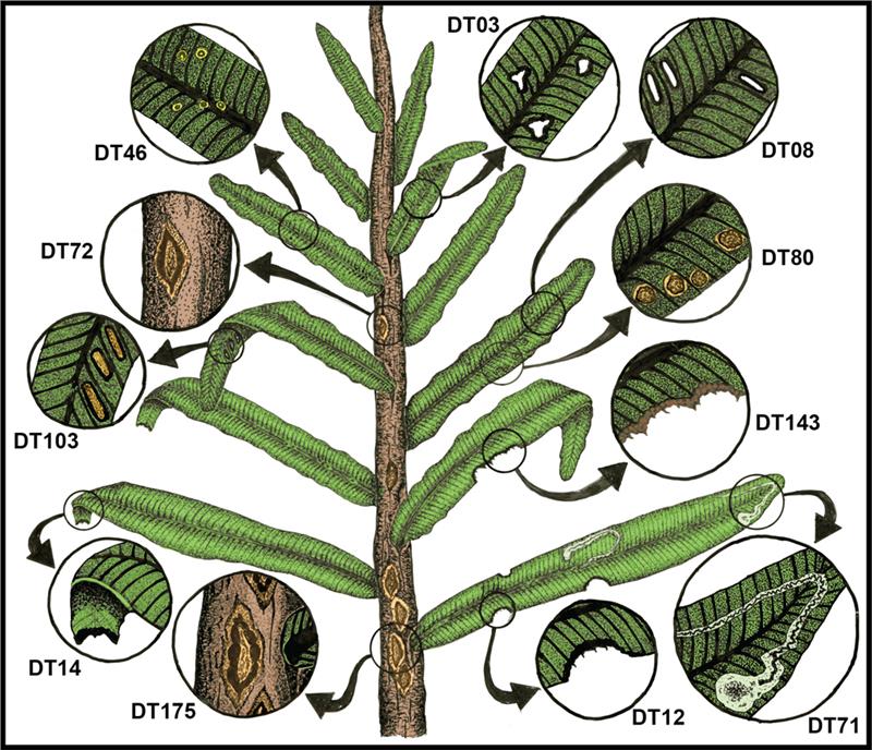 „Die in der Publikation gesammelten Daten zeigen etwa, dass es in den Dolomiten viel weniger Insektenspuren auf Pflanzenresten gibt, als auf der Südhalbkugel“, so Conrad Labandeira, Wissenschaftler am Smithonian Institute in Washington. Auch beweisen sie, dass vom Perm in die Trias die Anzahl der gefundenen Insektenspuren ansteigt, was auf einen Zuwachs der Insekten in dieser Epoche hinweisen könnte. Und dass sich die Insekten im Perm bereits ganz speziell von bestimmten Pflanzen ernährt haben, ist ebenfalls eine Erkenntnis, die auf die Rechnung der Autoren Kustatscher, Wappler und Labandeira geht. „So wurden zum Beispiel im Bletterbach vorwiegend Palmfarne und Nadelbäumen befressen, obwohl diese Pflanzen nur einen Teil der Flora ausmachen - nach dem Massenaussterben waren die Insekten hingegen auf die mittlerweile ausgestorbenen Samenfarne spezialisiert“, so Kustatscher. Außerdem sehe man, ergänzt Labandeira, dass sich vom Perm in die Trias immer mehr Insekten spezialisieren, währen Allesfresser nach und nach seltener werden.