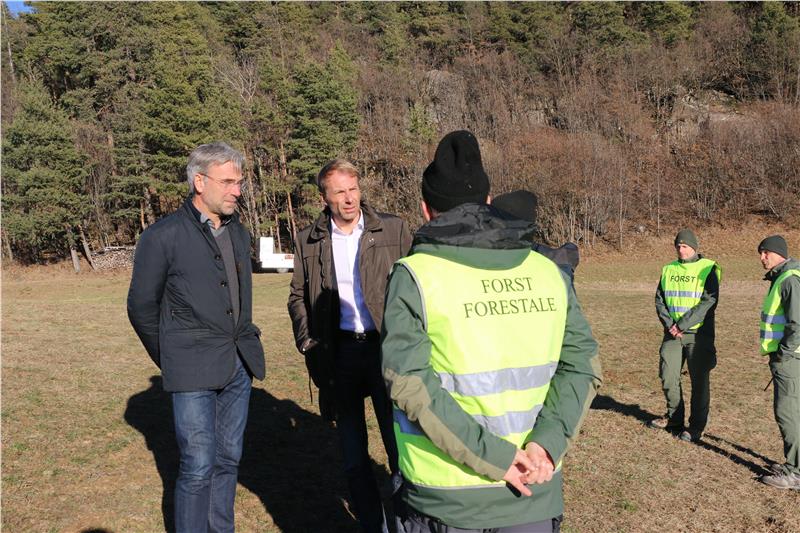 Ein Bild vom Brand unterhalb Bauernkohlern oberhalb von Bozen hat sich heute (3. Jänner) Zivilschutzlandesrat Schuler mit Ressortdirektor Unterweger verschafft.