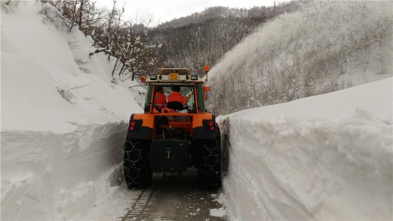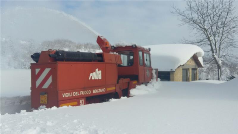 Radlader und Fräsen des Straßendienstes sind zum Freilegen von Landes-, Gemeinde- und Verbindungsstraßen in Palmiano und Roccafluvione unterwegs. In San Gregorio in Ascoli Piceno legen die Männer der Wildbachverbauung die Landesstraßen frei. Die Männer der Freiwilligen Feuerwehr sind in Montemonaco aktiv, um den Platz und die Zufahrten zu einem Heim für die Unterbringung von pflegebedürftigen Menschen und vom Erdbeben betroffenen und evakuierten Personen von den Schneemassen zu befreien.