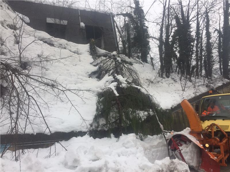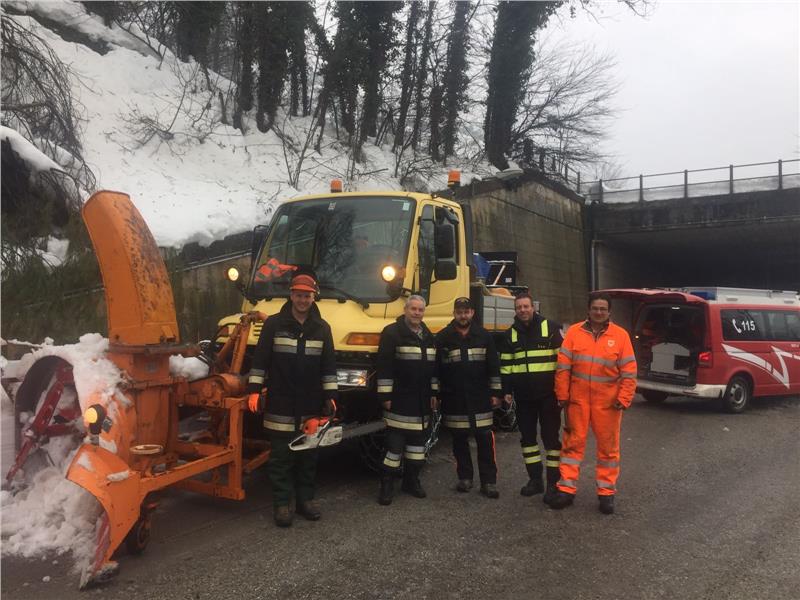 Außerdem müssen derzeit umgestürzte Bäume mit Motorsägen abgeschnitten werden. Der Straßenverlauf ist nicht immer klar ersichtlich und muss mit ortskundigen Personen während der Arbeit abgeklärt werden. Alle Geräte werden von technisch geschultem Personal bedient.
