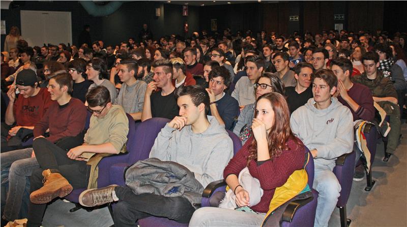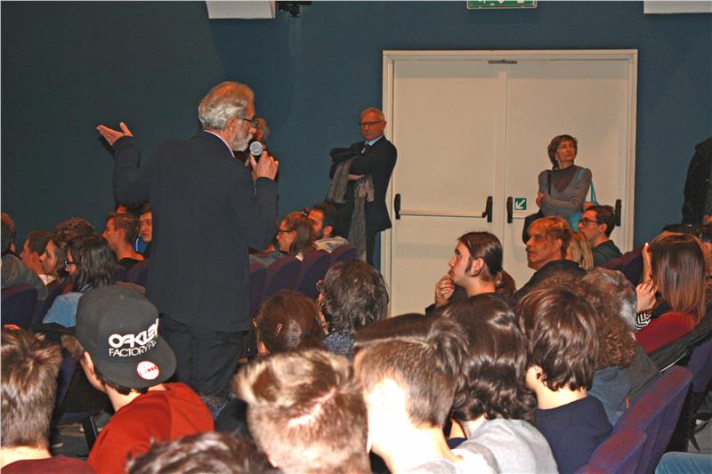 Eines der geplanten Treffen stand gestern (2. Februar) an der italienischen technologische Fachoberschule "Galileo Galilei" in Bozen auf dem Programm. Daran nahmen mehr als 400 Schülerinnen und Schüler aus sechs Bozner Oberschulen teil. Schuldirektor Carlogero Arcieri und Mauro Chiarel vom Unternehmen Tangram GmbH als Bezirksvertreter des Unternehmerverbandes begrüßten die Teilnehmer.