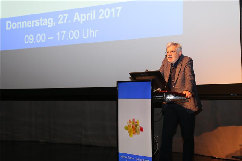 Ludwig Haag hielt anschließend ein Impulsreferat zum Thema "Klassenführung heute". Für ihn stellt die Klassenführung eine zentrale Lehrerkompetenz dar. Eine effiziente Klassenführung trage dazu bei, sowohl Unterricht zu organisieren, als auch Unterrichtsstörungen zu vermeiden oder beseitigen. In diesem Sinne seien Lehrer mit Führungskräften oder Managern zu vergleichen. "Erziehung und Unterricht gehören zusammen", betonte Haag. Er wies auf die enge Wechselwirkung zwischen Schülern und Lehrern hin, daher könne es auch keine Patentrezepte für die Klassenführung geben. Kommunikation, Organisation und Regulation stellen laut seiner Meinung die Grundlage für die Klassenführung dar. Er zeigte aber auch auf, dass sich der Begriff der Klassenführung im Laufe der letzten Jahrzehnte stark verändert hat: So war dieser in der Vergangenheit häufig auf den Umgang mit Disziplin und Intervention beschränkt, im Laufe der Zeit wurde er aber auf Lehrerhandeln und die Gestaltung lernförderlicher Lernumgebungen erweitert.