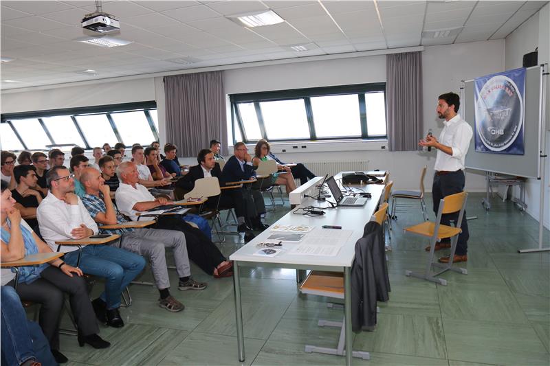 Es wurde die Entstehungsgeschichte des Projekts vorgestellt und sein Nutzen für die Amateurfunkergemeinde, für Amateurastronomen und für junge Menschen, die sich für Naturwissenschaften und Technik interessieren. Die Direktorin Barbara Willimek und die Lehrpersonen Ferdinand Heidegger und Sandra Zuccaro stellten die an der Schule durchgeführten Tätigkeiten vor, während Professor Indulis Kalnins die Tätigkeiten bei OHB präsentierte. Der Schüler Jakob Puff der TFO Bozen stellte eine Risikoanalyse für Kollisionen mit Teilchen im Orbit vor, die er in Zusammenarbeit mit dem Ernst-Mach-Institut der Fraunhofer-Gesellschaft in Freiburg durchgeführt hat. Gezeigt und erklärt wurde die Bodenstation IM3EAE für die Steuerung des Satelliten und den Empfang der Satellitendaten durch den Schüler Tobias Bernardi.
