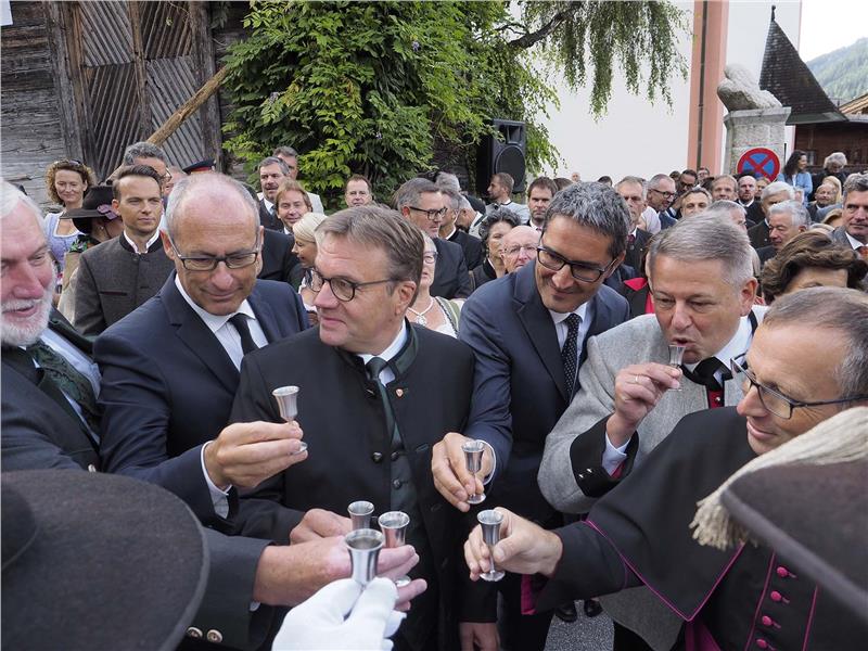 Nach einer Heiligen Messe und einem landesüblichen Empfang der Schützen hat Landeshauptmann Arno Kompatscher gemeinsam mit seinen Amtskollegen Günther Platter (Tirol) und Ugo Rossi (Trentino) im Beisein von Entscheidungsträgern und Gästen aus der gesamten Europaregion Tirol – Südtirol – Trentino das Europäische Forum Alpbach feierlich eröffnet. Beim offiziellen feierlichen Start auf dem Dorfplatz von Alpbach begrüßten auch der Alpbacher Bürgermeister Markus Bischofer und Forumspräsident Franz Fischler die Vertreter der drei Länder aus den verschiedensten Bereichen und die rund 5000 Teilnehmer am Forum. Das diesjährige Forum steht unter dem Leitmotiv „Konflikt und Kooperation“.