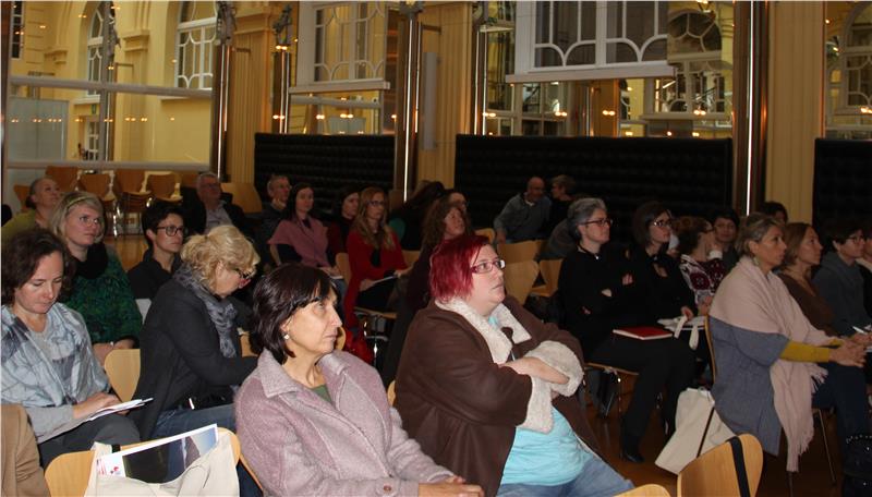 In Anschluss an die Impulsreferate diskutierten die fast ausschließlich weiblichen Teilnehmerinnen in Kleingruppen, dem sogenannten World Café, über Initiativen, die sich in den einzelnen Ländern bewährt haben. Es ging um die Arbeitseingliederung von Frauen, die Gewaltopfer waren, genauso wie um die Betreuung von Kindern, die Gewalt miterlebt haben, und um die Netzwerksarbeit der Dienstleistungen für Frauen. Diskutiert wurde auch über Täterarbeit und die Arbeit mit Migrantinnen im Frauenhaus.